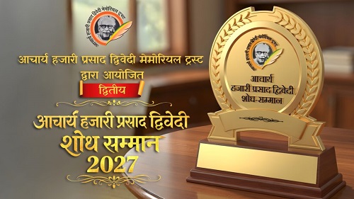 आचार्य हजारी प्रसाद द्विवेदी मेमोरियल ट्रस्ट यह घोषणा करता है कि द्वितीय आचार्य हजारी प्रसाद द्विवेदी शोध सम्मान हेतु आवेदन आमंत्रित किए जा रहे हैं।