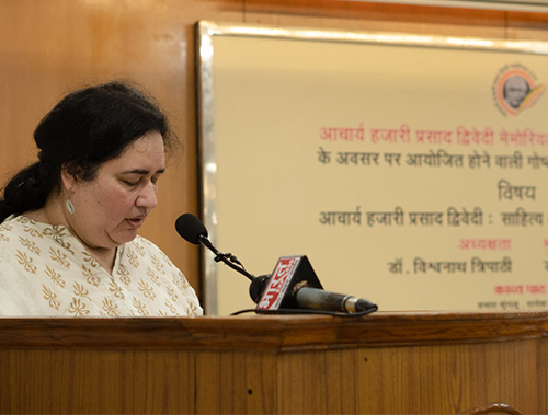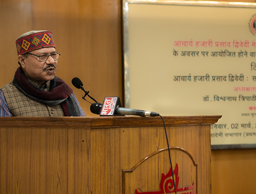आचार्य द्विवेदी के शिष्य और वरिष्ठ साहित्यकार डॉ विश्वनाथ त्रिपाठी ने आचार्य जी के जीवन के अनछुए पहलुओं से श्रोताओं को स्मृतिबोध कराया। उन्होंने आचार्यजी के साथ बिताये गये समय को अपने जीवन का सर्वश्रेष्ठ काल बताते हुए गुरु-शिष्य परंपरा का उत्कृष्ट उदाहरण बताया। पउन्होंने आचार्यजी की साहित्य शैली की विशिष्टता से परिचय कराते हुए ‘अशोक के फूल’ निबंध के विभिन्न पहलुओं से अवगत कराया।