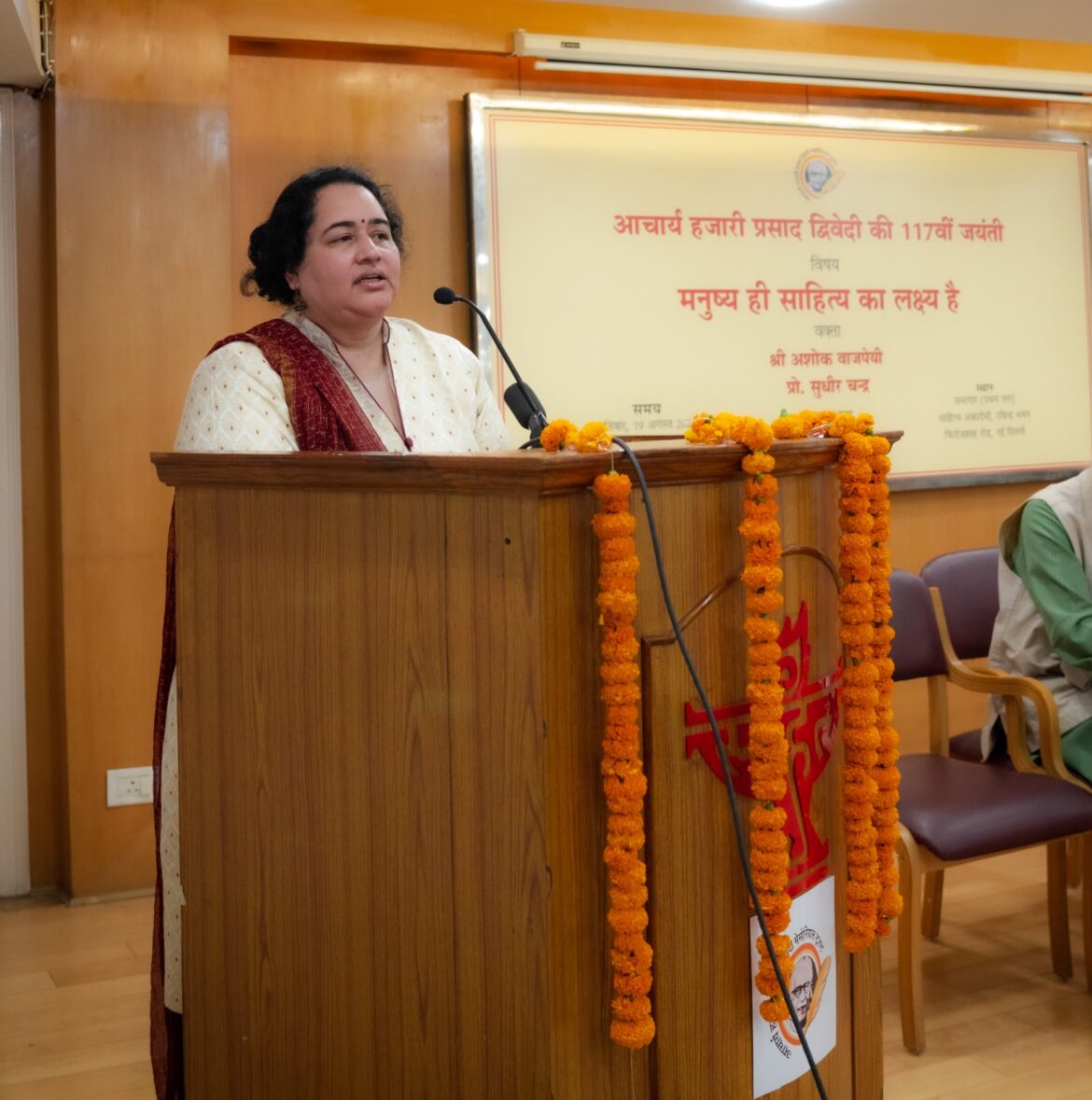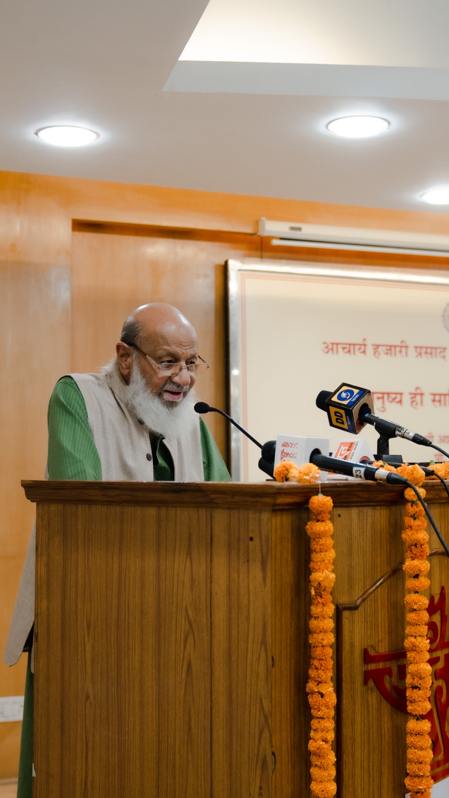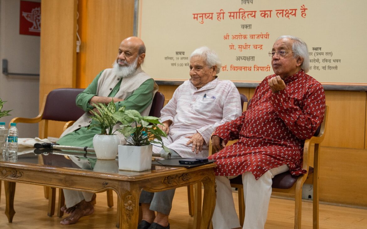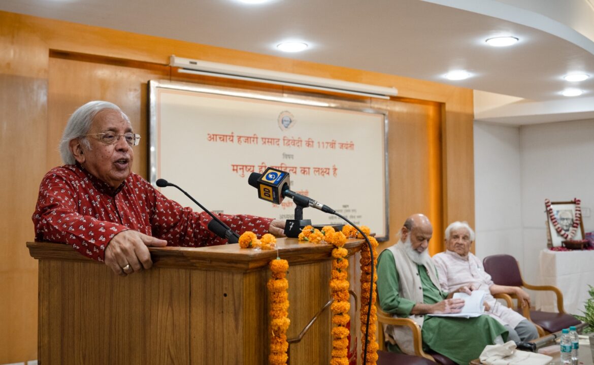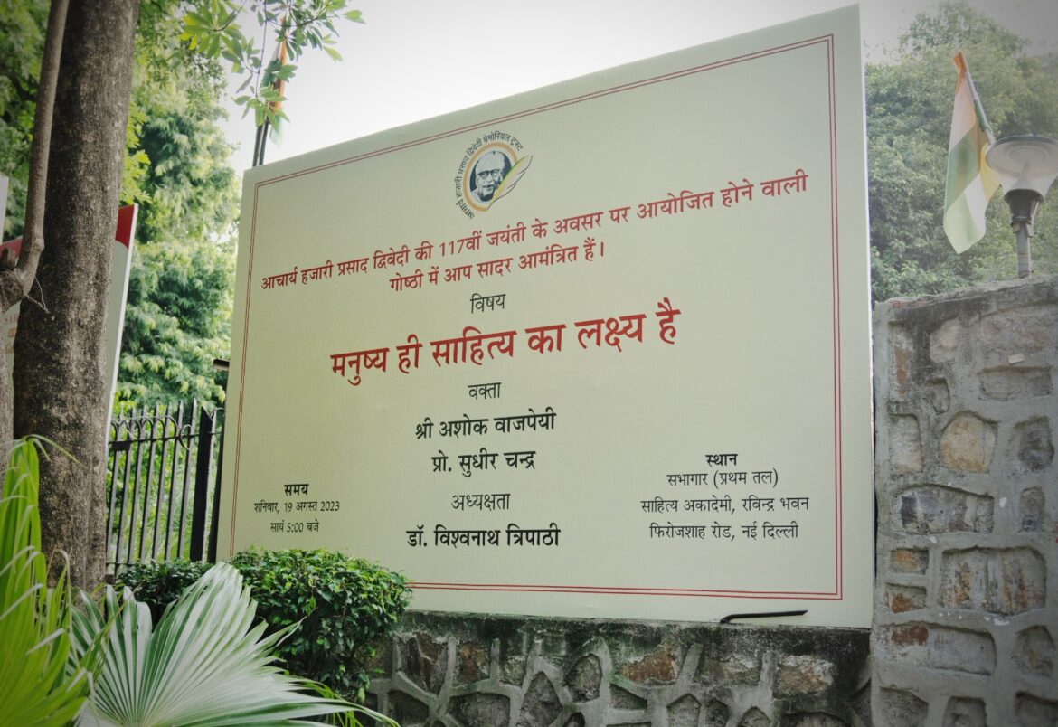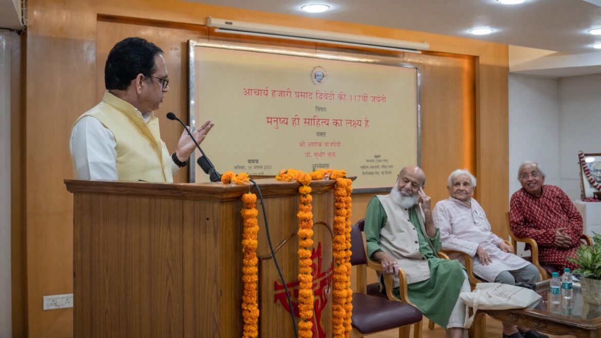 अशोक वाजपेयी शनिवार को आचार्य हजारी प्रसाद द्विवेदी की 117वीं जयंती पर साहित्य अकादमी के सभागार में आचार्य हजारी प्रसाद द्विवेदी मेमोरियल ट्रस्ट द्वारा आयोजित संगोष्ठी को संबोधित कर रहे थे। इस संगोष्ठी का विषय आचार्य द्विवेदी का प्रसिद्ध निबंध “मनुष्य ही साहित्य का लक्ष्य है” था।