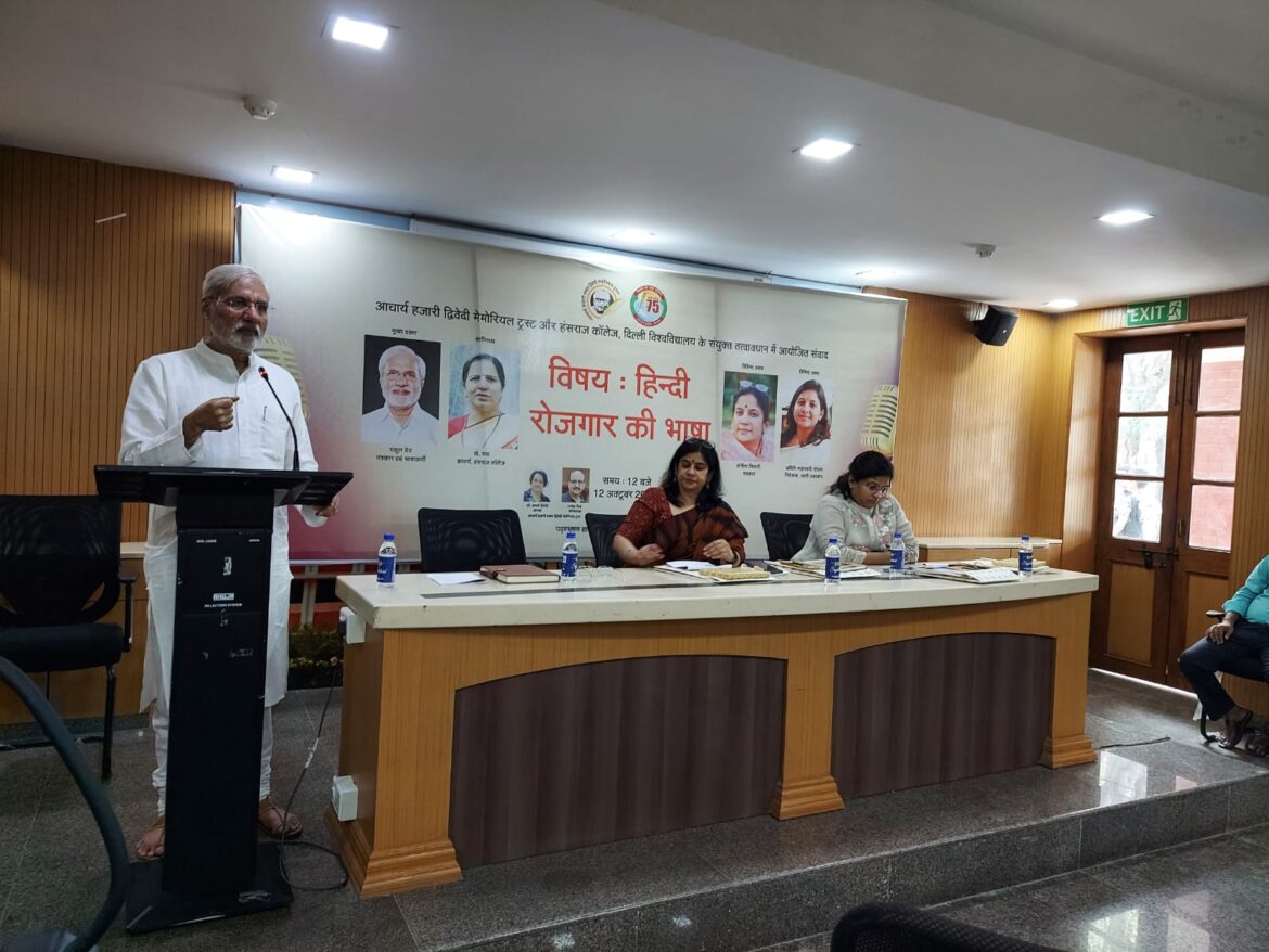 आचार्य हजारी प्रसाद द्विवेदी मेमोरियल ट्रस्ट एवं हंसराज कॉलेज, दिल्ली विश्वविद्यालय ने आयोजित की “हिंदी रोजगार की भाषा” विषय पर परिचर्चा