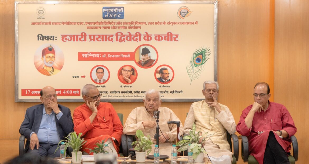 डॉ त्रिपाठी ने आचार्य द्विवेदी की 118वीं जयंती के अवसर पर साहित्य अकादमी के सभागार आयोजित व्याख्यान माला में उक्त बातें कहीं। व्याख्यान का विषय ‘हजारी प्रसाद द्विवेदी के कबीर’ था। इसका आयोजन आचार्य हजारी प्रसाद द्विवेदी मेमोरियल ट्रस्ट ने एनएचपीसी लिमिटेड और उत्तर प्रदेश सरकार के संस्कृति विभाग के सहयोग से किया था । इस अवसर पर ट्रस्ट की स्मारिका ‘पुनर्नवा’ का लोकार्पण किया गया। साथ ही डॉ नित्यानंद तिवारी द्वारा आचार्य जी पर लिखी गई पुस्तक ‘अतीत को फिर से आधुनिक कहने का विवेक’ विमोचन भी किया गया।डॉ तिवारी ने यह पुस्तक डॉ विश्वनाथ त्रिपाठी को समर्पित की है।