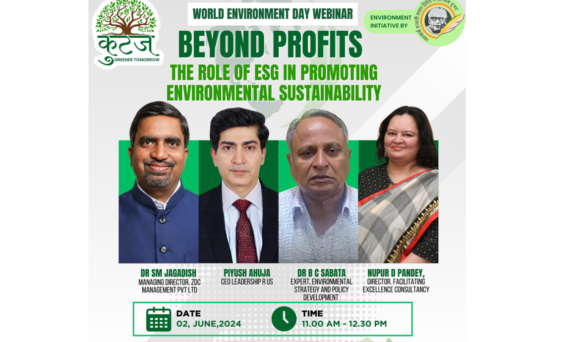 आचार्य हजारी प्रसाद द्विवेदी मेमोरियल ट्रस्ट के पर्यावरणीय पहल कुटज ने पर्यावरण दिवस के मौके पर एक वेबिनार का आयोजन किया । वेबिनार का विषय था पर्यावरणीय स्थिरता को बनाए रखने में इएसजी की भूमिका।