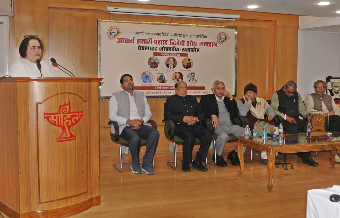 डॉ त्रिपाठी आचार्य हजारी प्रसाद द्विवेदी मेमोरियल ट्रस्ट की स्थापना की चौथी डॉ वर्षगांठ की पूर्व संध्या पर बुधवार को साहित्य अकादमी के सभागार में आयोजित एक समारोह में आचार्य हजारी प्रसाद द्विवेदी शोध सम्मान वेबसाइट का लोकार्पण करने के बाद समारोह को संबोधित कर रहे थे। इस अवसर पर पूर्व कांग्रेस महासचिव हिंदी जनार्दन द्विवेदी, प्रसिद्ध हास्य कवि पद्मश्री सुरेंद्र शर्मा, दिल्ली विश्वविद्यालय के दक्षिणी परिसर के हिंदी विभाग के अध्यक्ष प्रो अनिल राय, जामिया मिलिया इस्लामिया के मानविकी और भाषा विभाग के प्रोफेसर नीरज कुमार अलीगढ़ मुस्लिम विश्वविद्यालय के हिंदी विभाग के प्रोफेसर वेद प्रकाश समेत बड़ी संख्या में साहित्य प्रेमी उपस्थित थे। इस अवसर पर स्मृति चिन्ह का भी अनावरण किया गया।