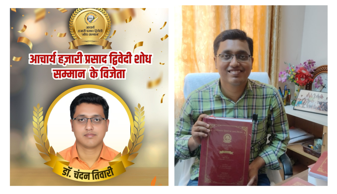 आचार्य हजारी प्रसाद मेमोरियल ट्रस्ट की अध्यक्ष डॉ अपर्णा द्विवेदी ने बृहस्पतिवार को शोध सम्मान के लिए डॉ चंदन तिवारी के नाम की घोषणा के उपरांत बताया कि उत्तर प्रदेश के गाजीपुर जिले के मूल निवासी डॉ चंदन तिवारी ने दक्षिण बिहार केंद्रीय विश्वविद्यालय से वर्ष 2022 में ‘आचार्य हजारी प्रसाद द्विवेदी भाषा चिंतन’ विषय पर पीएचडी की उपाधि प्राप्त की थी। वह वर्तमान में राजस्थान के सलूंबर जिले इसके राजकीय महाविद्यालय में असिस्टेंट प्रोफेसर (गेस्ट फैकेल्टी) के रूप में कार्यरत हैं ।